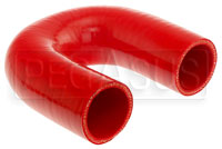This 1 5/8" (41mm) ID 180 degree elbow hose is hand-crafted and quality inspected to the highest European standards. Guards Red with a smooth, shiny "wipe-down" finish. Legs measure approximately 4 inches long (measured from the centerline of the U-bend). Leg spacing is 4" (100mm) center-to-center (2" centerline bend radius). The 3-ply reinforcement results in a working pressure rating in excess of 38 psi and a 4.5mm wall thickness (50mm / 2" OD). Use our Hose Joiners (HJ41) and our Lined Hose Clamps (Part No. 3613-2.25) to construct the exact shapes you need.