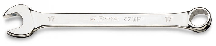 The 42MP Combination Wrenches from Beta Tools have one open end (15° angle) and one offset 12-point box end. The high-polish, chrome-plated finish looks great and cleans up easily. Sold individually.