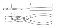 The heavy jaws taper down to 5/64" (1.9mm) diameter pins. The jaws are straight to work with the plier handles parallel to the shaft. 7 1/16" overall length with 1" long jaws. Black oxide finish with Beta orange handles.