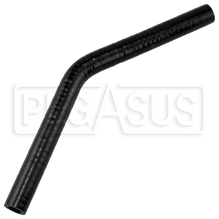 This Stealth Black 45 degree elbow has a 1/2" ID with a smooth, shiny "wipe-down" finish. The legs measure 150mm (5.9") long (measured from the centerline of the opposite leg). The 3-ply reinforcement results in a working pressure rating in excess of 80 psi and a 4mm wall thickness (21mm / 13/16" OD). Use our Hose Joiners (HJ13) and our Lined Hose Clamps (Part No. 3613-1.00) to construct the exact shapes you need.