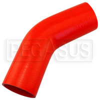 This Trofeo Red 45 degree elbow has a 3" ID with a smooth, shiny "wipe-down" finish. The legs measure 150mm (5.9") long (measured from the centerline of the opposite leg). The 4-ply reinforcement results in a working pressure rating in excess of 26 psi and a 5.5mm wall thickness (87mm / 3 7/16" OD). Use our Hose Joiners (HJ76) and our Lined Hose Clamps (Part No. 3613-3.75) to construct the exact shapes you need.