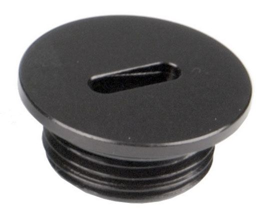 Block off an unused -8 (3/4-16 UNF thread) O-ring port with this low-profile plug from Aeromotive. Instead of a thick hex head, this black anodized aluminum plug has a thin, round flange with a slot in the center to accept your flat-blade screwdriver. Includes sealing O-ring. Sold individually. We also stock replacement O-Rings (Part No. 3244-08).
