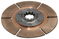 This 5 1/2" metallic clutch disc fits the Tilton OT-III Single Disc Racing Clutch (Part No. 173-60). This paddle-style disc has four individual friction segments for lower rotational inertia than a standard full-circle disc. A generous radius between the paddles also minimizes hub plate cracking due to slight misalignments in the drivetrain. The downside is slightly higher wear rate due to the overall decrease in friction material.