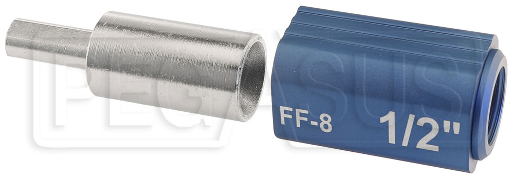 This 8AN Fitting Fixer works on any male 8AN fitting conforming to AN, SAE, or JIC standards. The guide collar has the -8 number as well as the corresponding tubing size (1/2") etched on the side for quick identification. Sold individually. Conceived, designed, and manufactured in the USA.