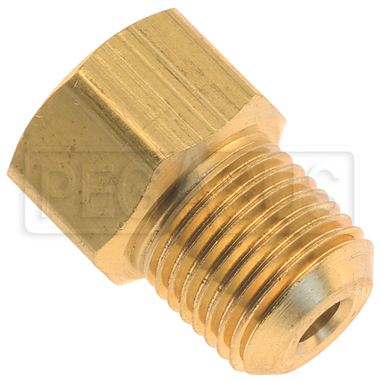The male end of this adapter has 1/8 NPT male tapered pipe threads to fit a standard 1/8 NPT port. The female end accepts a standard 3/8-24 inverted flare tube nut (not included). To install, just apply a thread sealant (sold separately) to the NPT threads and screw the fitting into your port. Then screw your tube nut into the adapter. High-pressure brass. Sold individually.