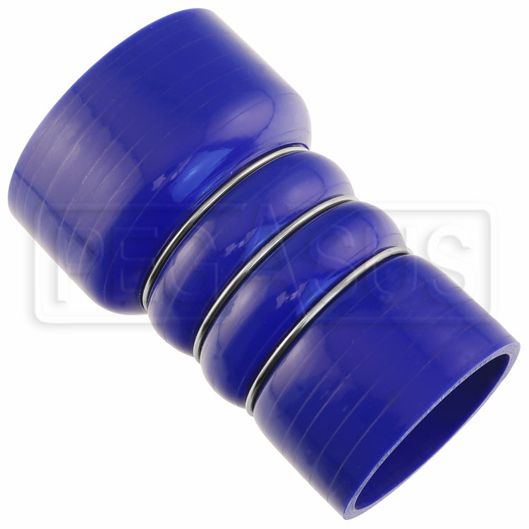 This hose is a straight reducing coupler measuring 6 inches (150mm) long overall. It is designed specifically for connecting a 2 3/4" (70mm) OD metal intake pipe to a 3 1/2" (89mm) OD pipe, absorbing slight misalignment and vibrations. The 5mm wall thickness results in a 3.15" (80mm) OD at one end and 3 7/8" (99mm) OD at the other. Sold individually.