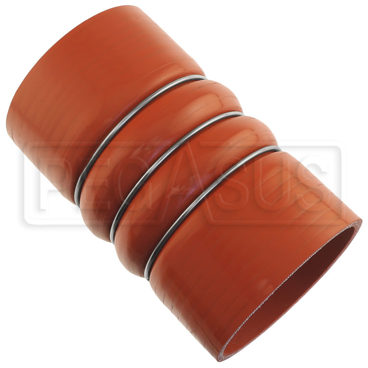 Charge Air Cooler (CAC) hose is specifically designed to handle the higher temperatures and pressures in high-performance turbo and supercharged applications. Four layers of aramid reinforcement and 3 reinforcing rings allow operating pressures of 56 psi (227 psi burst pressure) and temperatures up to 500°F (260°C). This temperature rating is perfect for the "hot" (pre-intercooler) side of the system. This hose is color-coded Orange for easy identification.