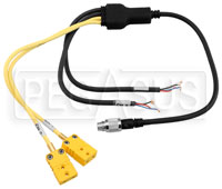 This special split sensor cable from AiM is designed for you to connect one AiM thermocouple plus three analog sensors of your choosing to an AiM ACC2 or ACC3 Analog-CAN Converter. Each sensor cable is 50cm (19.7") long. Two of the cables each have 4 unterminated wires for you to wire to any analog sensors: temperature (thermoresistor), pressure, position, etc. The other two cables each have a Mignon (2-pin flat) connector, ready to accept any AiM thermocouples (liquid temp, CHT, or EGT).