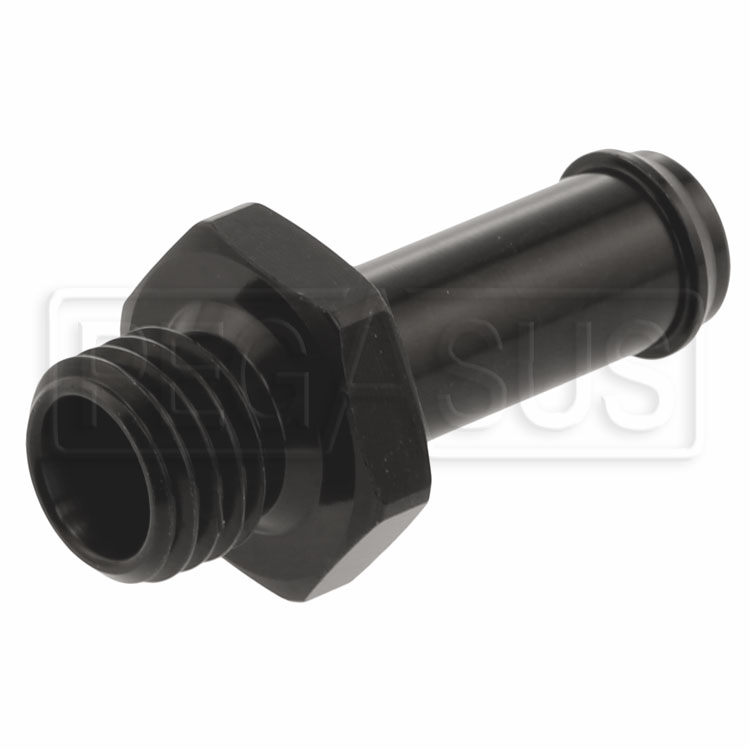 This straight aluminum adapter is useful for connecting common 5/16" or 8mm ID rubber hose to fuel pumps with M12x1.5 female threaded ports, such as the outlet of the Bosch FP165 Fuel Pump. Use with standard worm drive hose clamps. Black anodized aluminum. Sold individually.