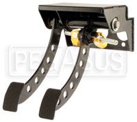 The Pro-Race 2-pedal firewall-mount pedal box is simple to install and suitable for a wide range of applications. The lightweight steel assembly includes Clutch and Brake pedals in one unit. Both pedals ride on oil-impregnated bushings for smooth, consistent operation and long life. Both pedals also feature pre-applied friction material for traction. The firewall mounting is the "conventional" configuration, positioning the master cylinders in the engine compartment.