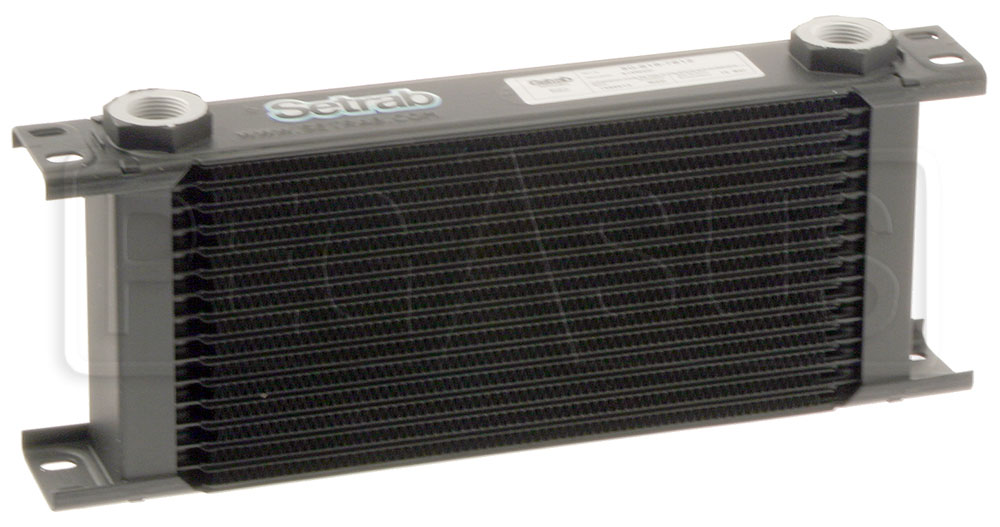Setrab oil coolers have been popular in all levels of racing since the 1970s. The brazed aluminum construction provides the maximum cooling capacity in the smallest possible space, with minimal pressure drop. Coolers are pressure tested to 10 bar (145 psi) to ensure quality. The black epoxy finish protects against corrosion and looks great. The unique convertible inlet fittings (sold separately) allow you to change your plumbing without having to replace the cooler.