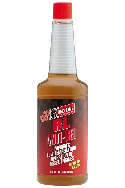 Red Line RL Anti-Gel improves diesel fuel flow in extreme cold while reducing the freezing point of water in the fuel. Unique wax dispersant reduces the pour point of a typical diesel fuel by 25°F and may allow the use of more efficient #2 diesel fuel in cold weather. RL Anti-Gel also improves the lubrication of injectors and fuel pumps. Contains no harmful alcohol. One 15 oz. bottle treats 100 gallons at the recommended dosage.