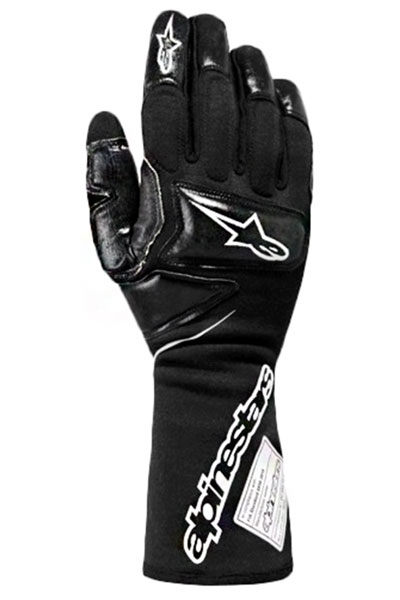 Thin foam padding protects the knuckles, and thin leather patches on the palm provide a durable, non-slip grip. The v2 generation adds a fire-resistant silicone rubber coating on certain leather patches for an even stronger grip. A padded leather reinforcement between the thumb and finger protects your hands from impact while using a wheel gun during tire changes. A special reinforcing patch on the gauntlet cuff is strategically placed right where you would tug on the glove to pull it on or off. And this is all in addition to the same construction details that make Alpinestars driving gloves so comfortable. FIA 8856-2018 approved for fire resistance, but the padding in these gloves make them just a little bulky for driving. Black with white Alpinestars logos only. To find glove size, measure around the largest part of the hand over the knuckles while making a fist, excluding the thumb.