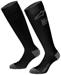 Nomex® undergarments provide a dramatic increase in protection when worn with a driver's suit. Flame resistant underwear and socks are required by many race sanctioning bodies. The ZX EVO v3 socks from Alpinestars are knit from Black or White fire-retardant aramid fibers. They come all the way up to the knee for coverage and protection. Reinforced toe and heel extend the usable life. FIA 8856-2018 approval is printed just below the top cuff. Sold in pairs.