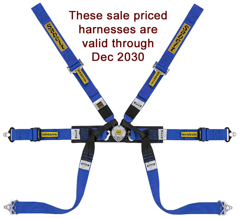 This sale priced Sabelt Steel Series S622 FIA Blue Sewn Loop Harness has an FIA expiration date of December 31, 2030.